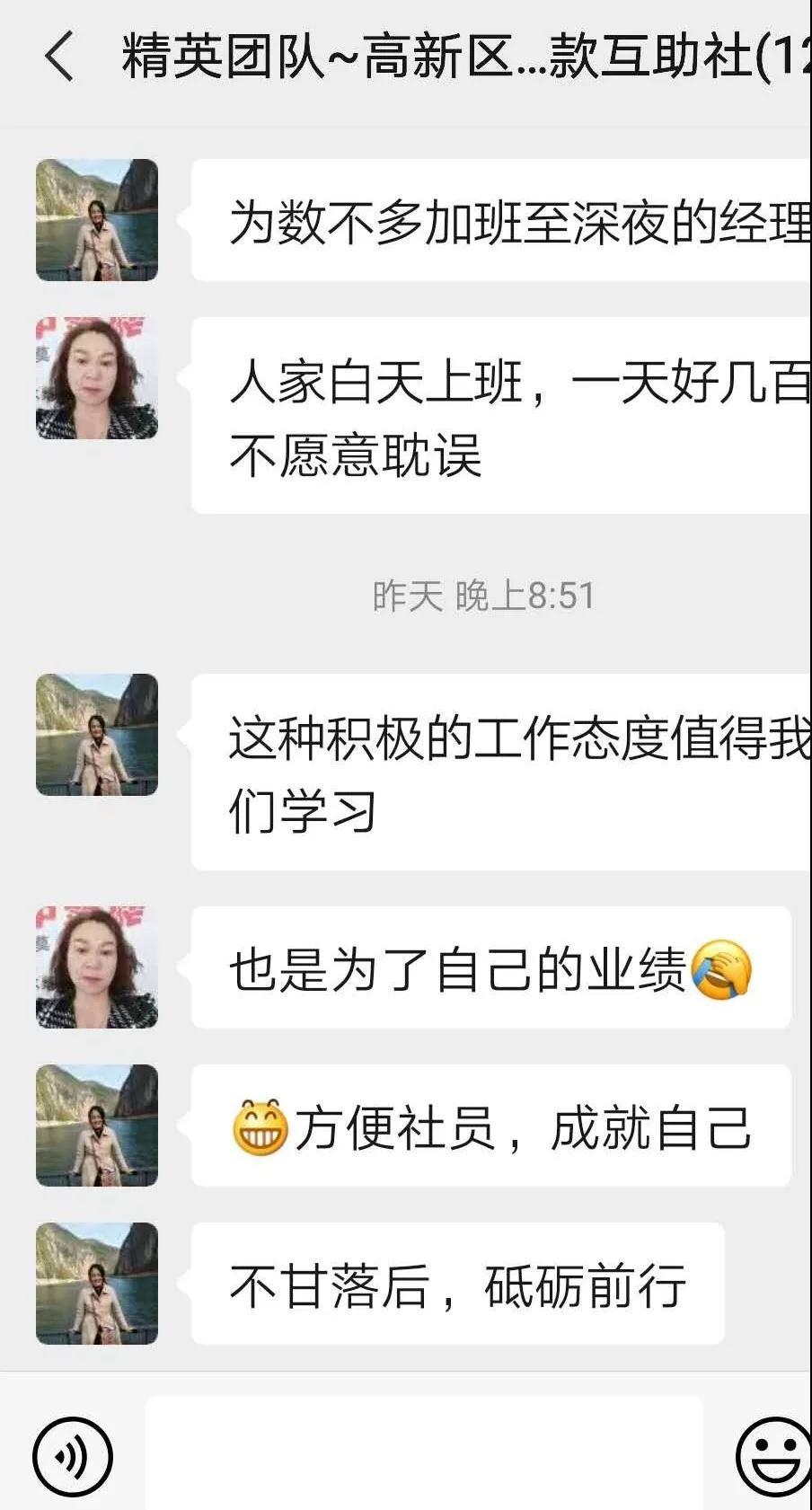 回忆去年当她得知领导要安排她转成社区经理从事信贷工作,对于这个消息,她是不敢相信的,然而促使她接受的是高新区分社团队的友好接纳和家人般的支持,才想着试试做。