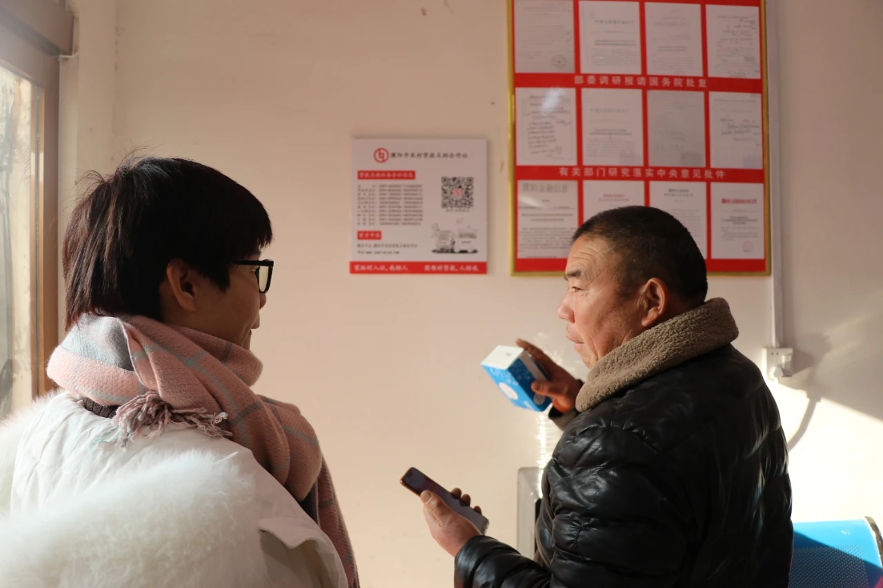 社区经理万桂玲给前来咨询的群众介绍贷款合作社,引导关注我社微信公众号,了解我社服务范围、发展、近况,并让他们留下联系方式和经营内容。![]()