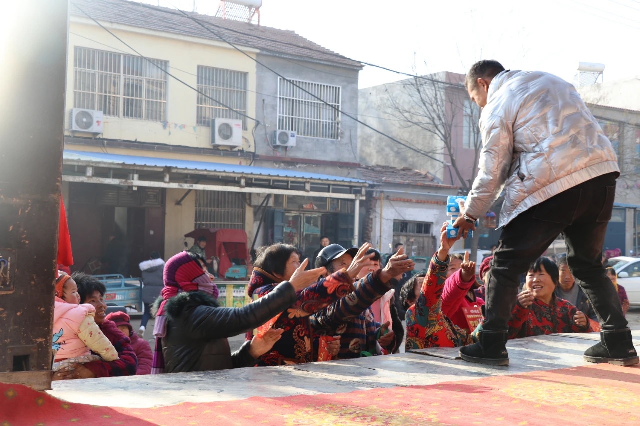 中心门口的舞台上,动感的舞蹈结束后,主持人开始介绍贷款互助社机构简介、服务范围,在互动环节送上中心准备的随手礼:精品食用盐或纸抽。随手礼,大娘们喜欢的是精品食用盐,年轻人喜欢的是纸抽。