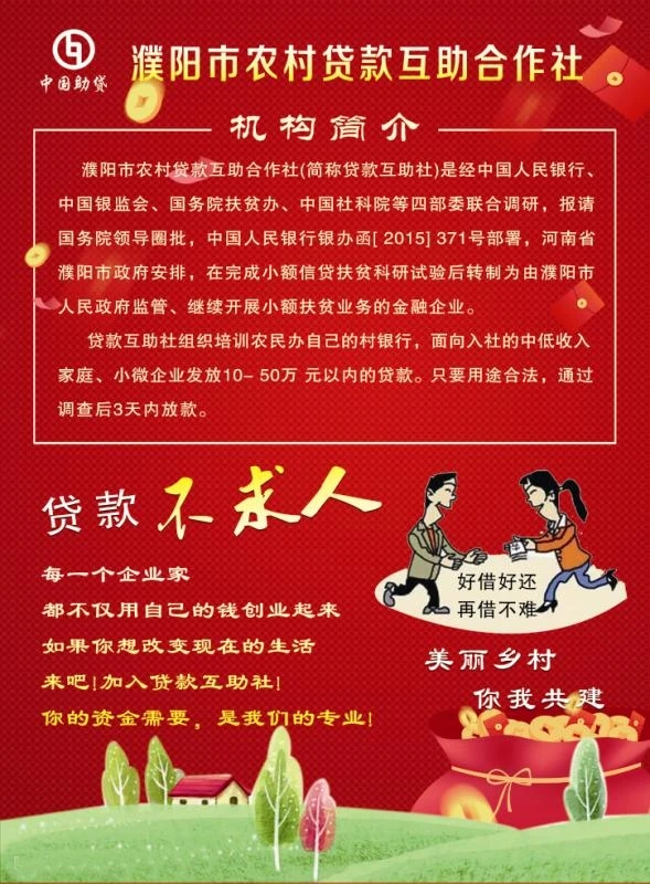 贷款互助社线上宣传平台有两个:一个是濮阳助贷社网站:http://www.loan-union.com/一个是微信公众号:濮阳市农村贷款互助合作社